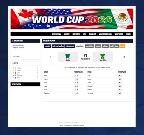 De WK Pool premium hebben wij speciaal ontwikkeld als aanvulling op ons whitelabel pakket. Het is een goedkopere oplossing bedoeld voor kleine bedrijven. Ben je op zoek naar een echte whitelabel oplossing? Bekijk dan ons aanbod op https://www.whitelabelpool.nl/